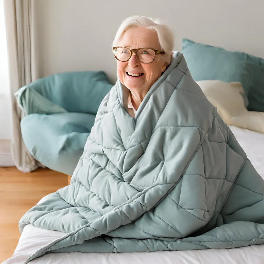 If you're looking for a way to help your elderly loved one get a good night's sleep, a weighted blanket may be the answer.