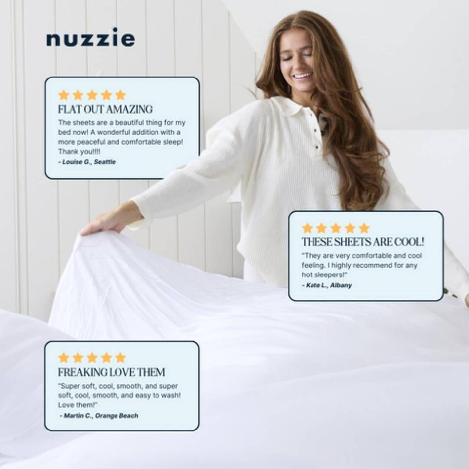 Nuzzie’s commitment to delivering top-tier bedding to your doorstep is true to all, especially for the Forever Chill Bamboo Sheets. Enjoy silky-smooth, cozy sheets while staying 3 degrees cooler than your ordinary set.